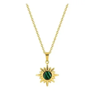 Magnifique collier orné d’une pierre de soleil, à la chaîne « chapelet ».