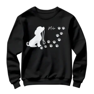 T-shirts, Sweats & Hoodies Personnalisés Chien – Design Cœur & Empreintes, 100% Coton, Prénom à Personnaliser 🐾❤️ – A28122404