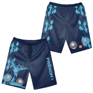 Short de Pétanque Personnalisé – Bleu et Vert avec Prénom et Motif Boule – A010624N29