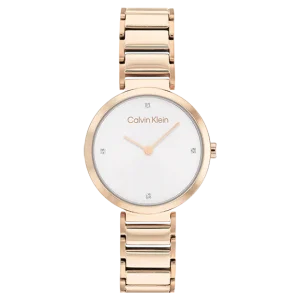 Calvin Klein – Montre Timeless Rose Dorée & Cristaux