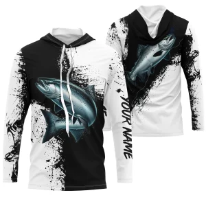 T-shirt Personnalisé Pêche Du Saumon Noir et Blanc, Cadeau Original Pêcheur – CT26072212