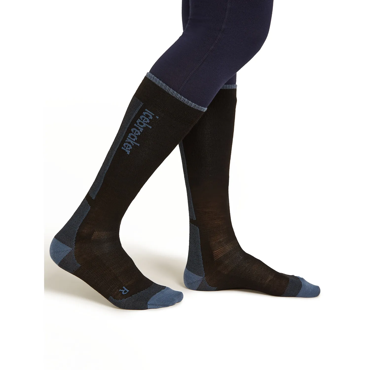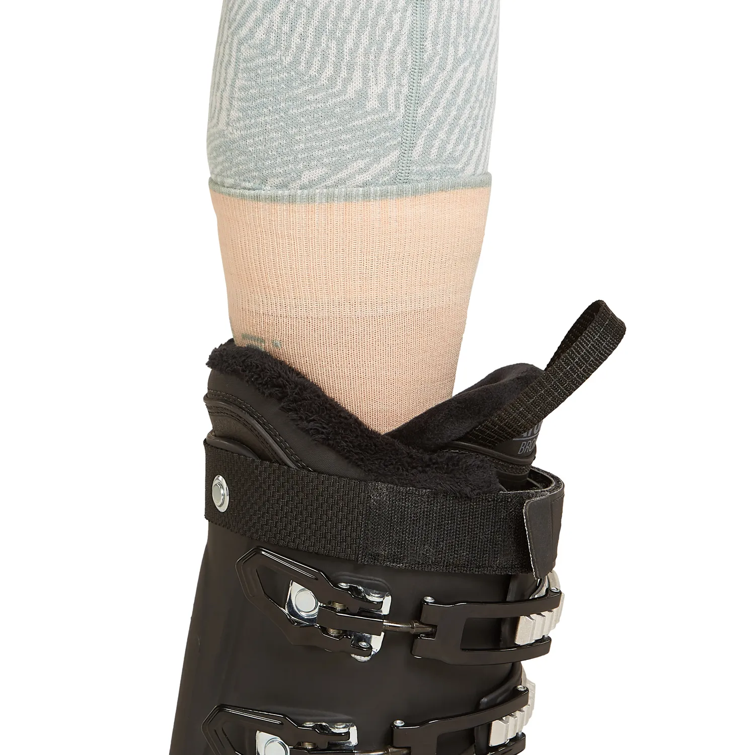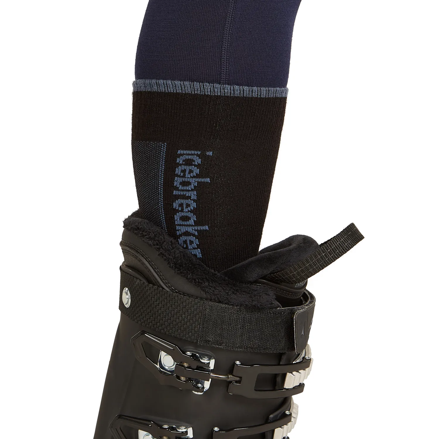 Chaussettes de ski à coussinage minimal conçues pour skier en station ou en pleine montagne, les mi-bas grammage ultra-léger mérinos Ski+ sont composés d’un mélange durable et respirant à base de laine mérinos.