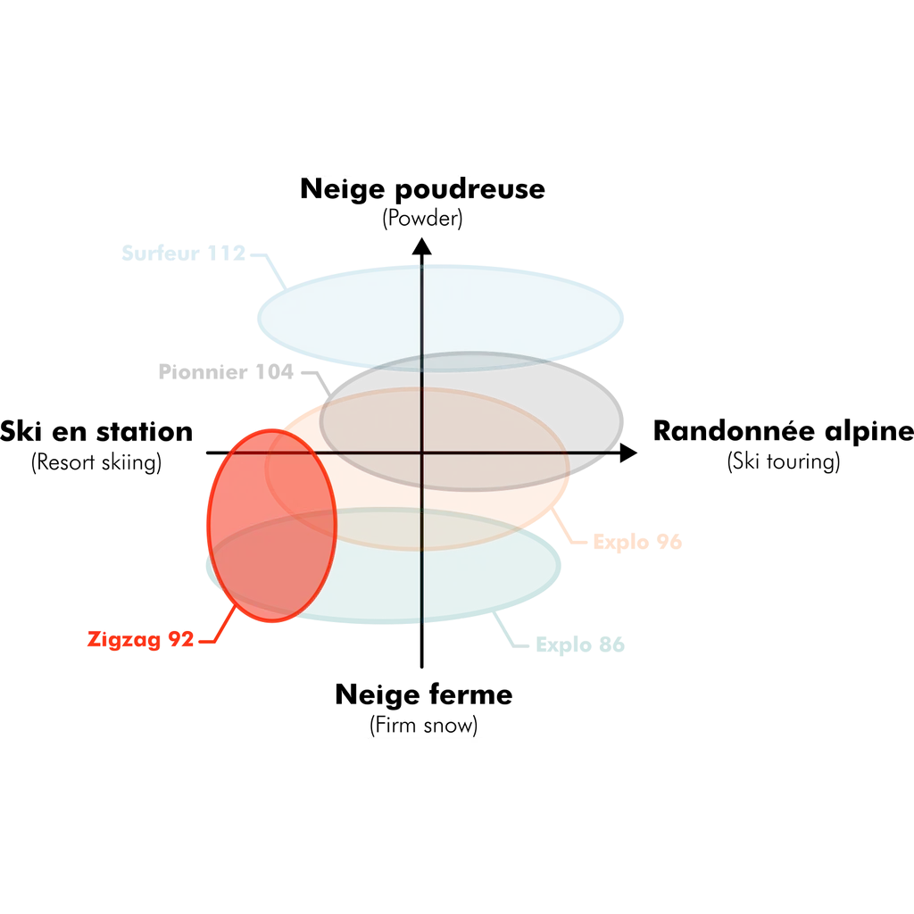 Que vous soyez un skieur à la recherche d’une expérience dynamique tout-terrain ou un passionné de snow park en quête du twin-tip parfait pour les tricks et les sauts, le Zigzag 92 est conçu pour dépasser vos attentes. Affrontez les sauts, les rails et les features avec facilité, grâce à la nature joueur des skis. Son design trouve l’équilibre parfait entre vivacité et robustesse, en faisant ainsi l’option idéale aussi bien pour les débutants affinant leurs compétences que pour les riders chevronnés repoussant leurs limites dans le park.