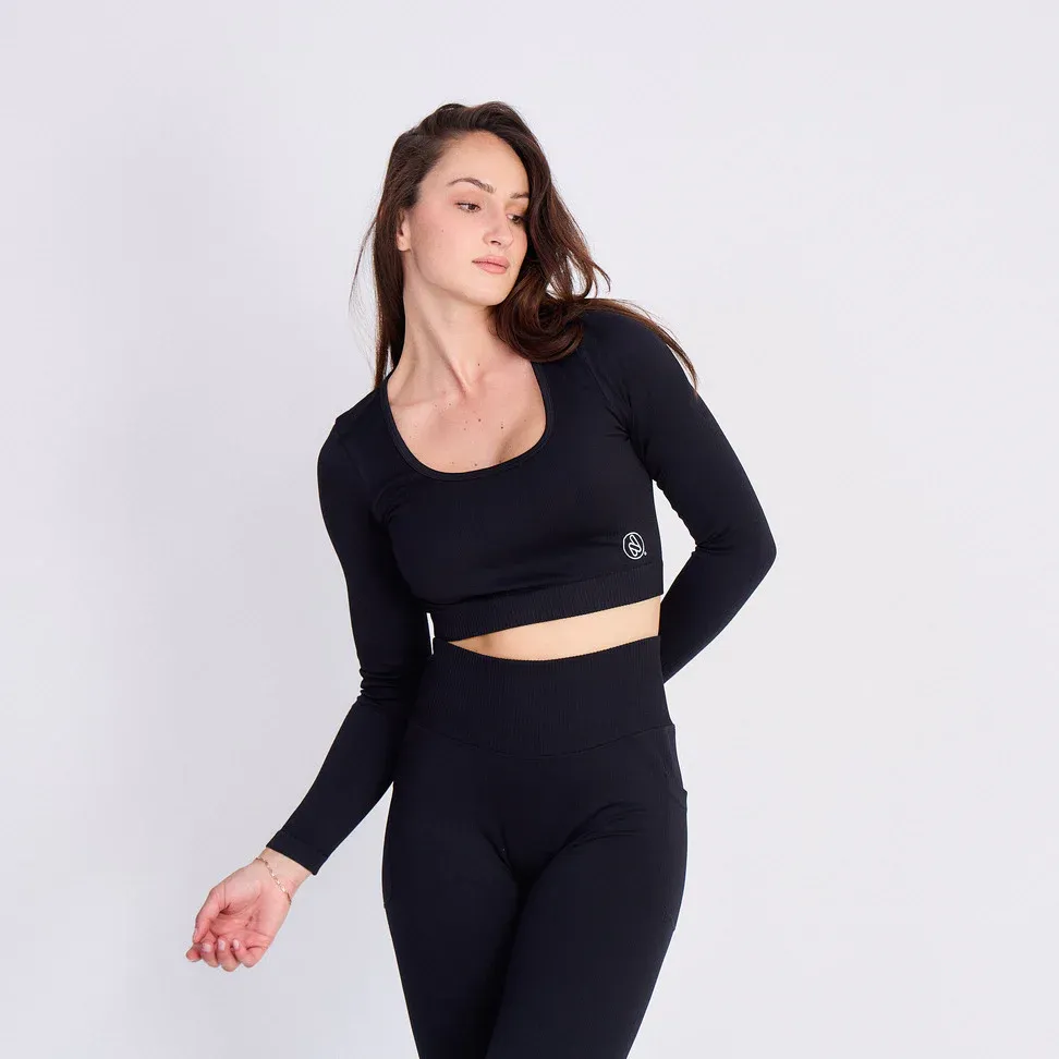 HAUT CROP MANCHES LONGUES – PERFORMANCE ET STYLE, SANS COUTURES