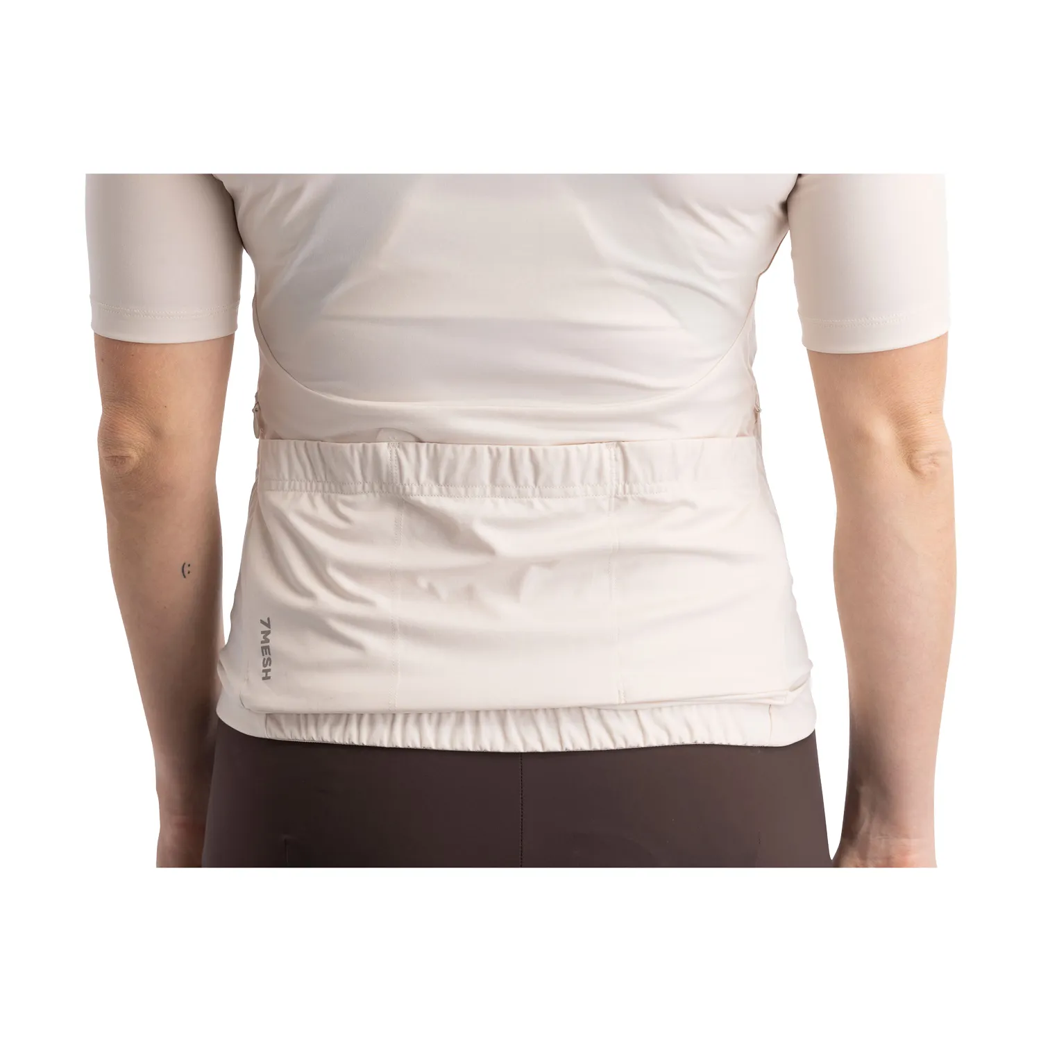 - Ourlet arrière avec bande adhérente pour maintenir le maillot en place et ourlet avant sans adhérence pour améliorer la facilité de mouvement