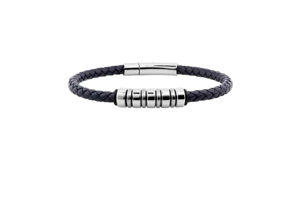 Pixies – Bracelet Homme en Cuire et en Acier « Tressé Bleue Marine »