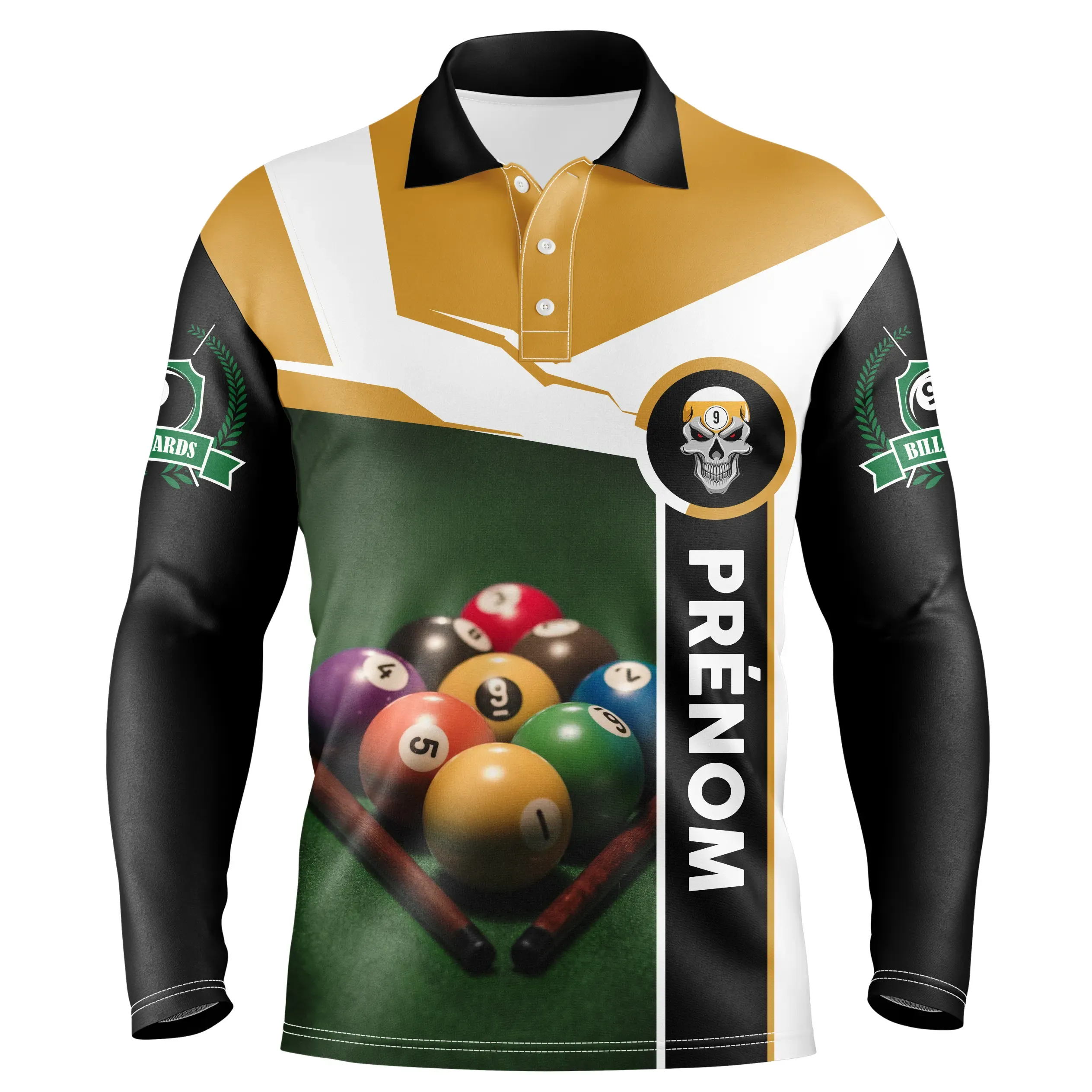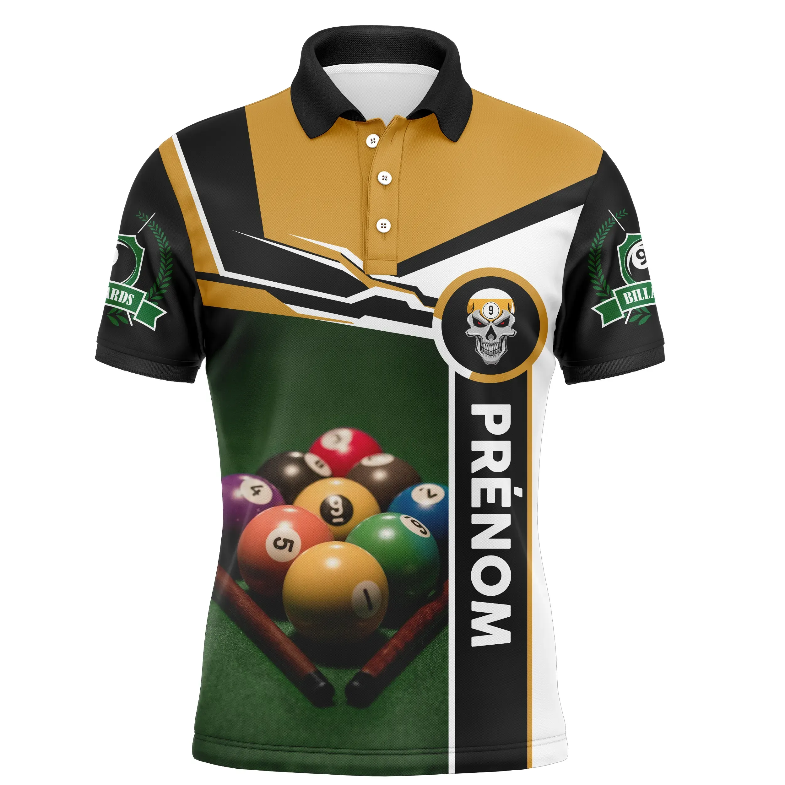 Fini le temps où vous ne pouviez pas montrer votre amour pour le billard. 🤩 Ce polo de billard professionnel donne vie à votre passion, directement sur votre poitrine ! Imaginez avoir votre prénom 🏷️ imprimé à côté d’une boule de billard chic et élégante sur une table verte. La classe, non ?