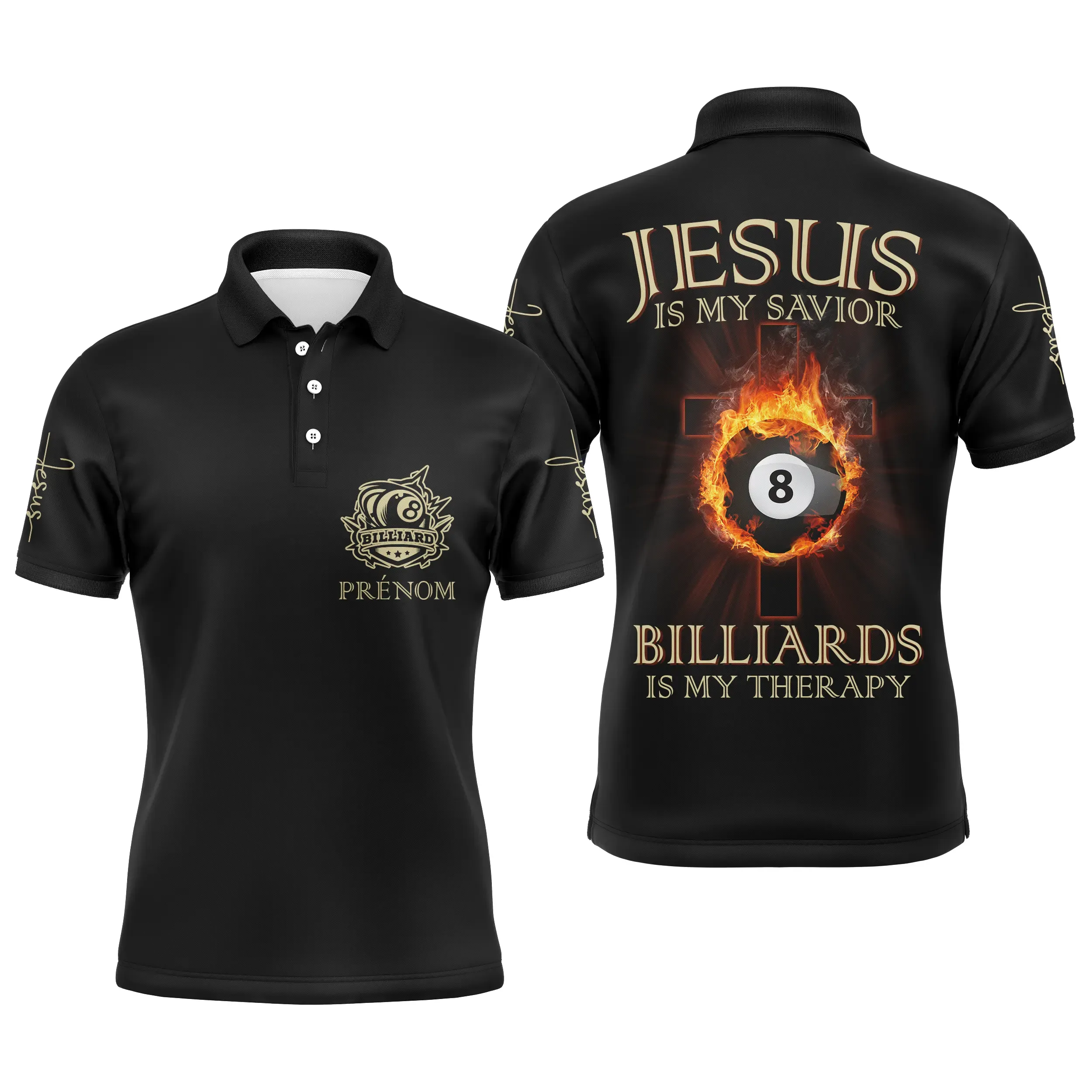 Polo De Billard Professionnel Personnalisé JEU DE LA 8 , Jésus Est Mon Sauveur Le Billard Est Ma Thérapie – CT27062313