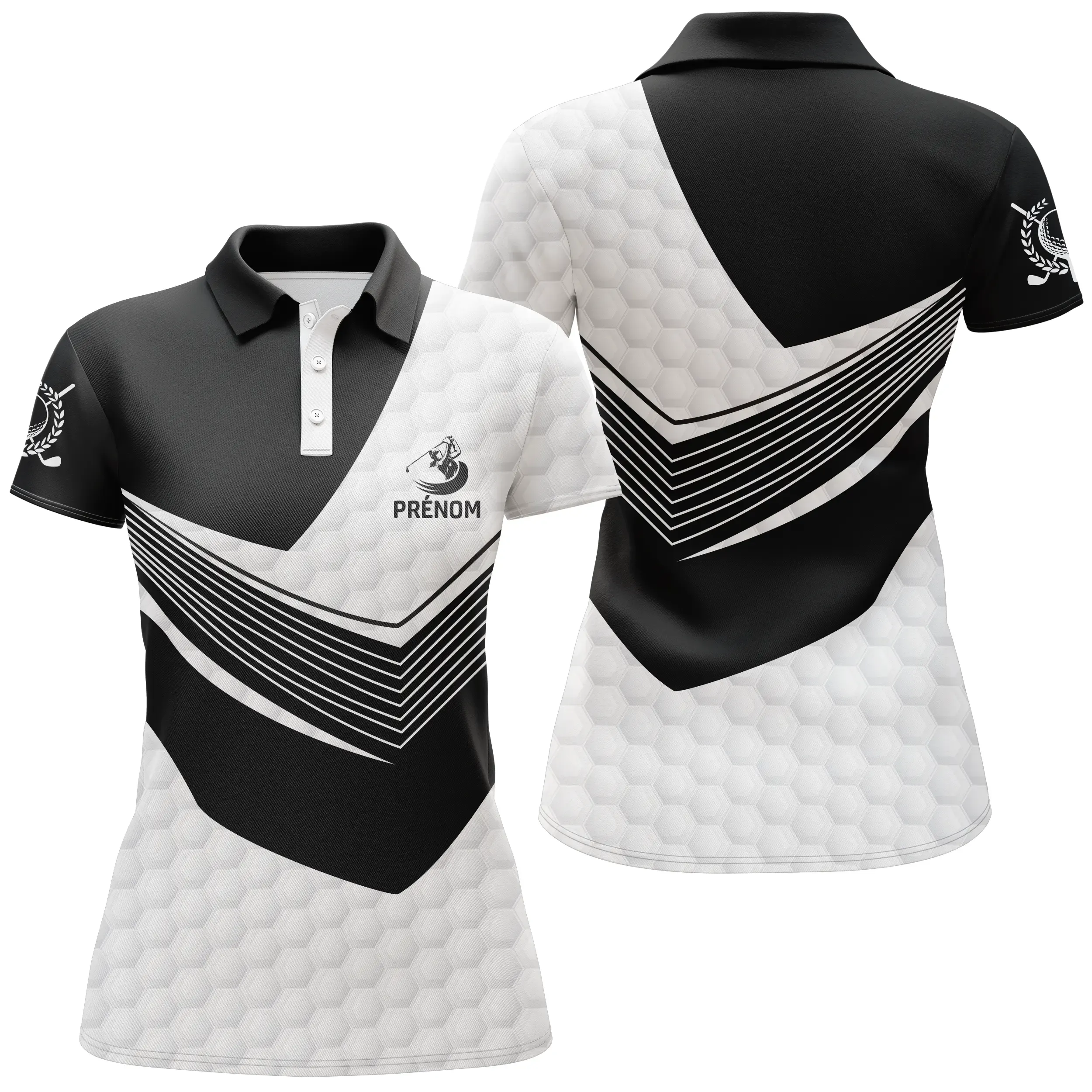 Vous voulez faire une impression sur le parcours ou simplement exprimer votre amour du golf ? Alors n’hésitez plus. Notre polo noir et blanc, orné d’un motif golfer, est un choix parfait.