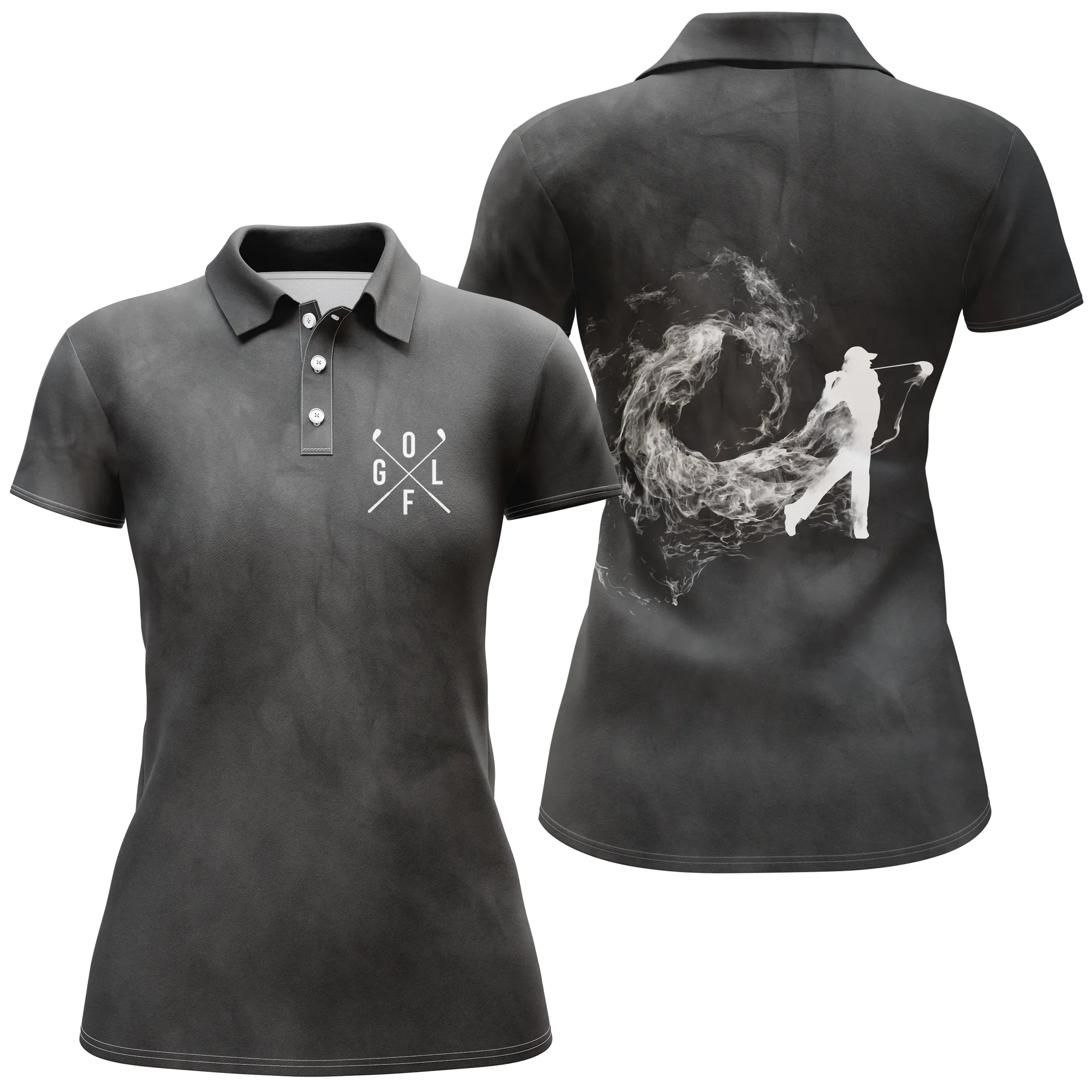 👕 Disponible du S au 6XL, ce polo homme et femme arbore un superbe motif de golfeur sur le dos, sur un fond de fumée. Il donnera à votre tenue un look unique et stylé sur les greens. 🌟