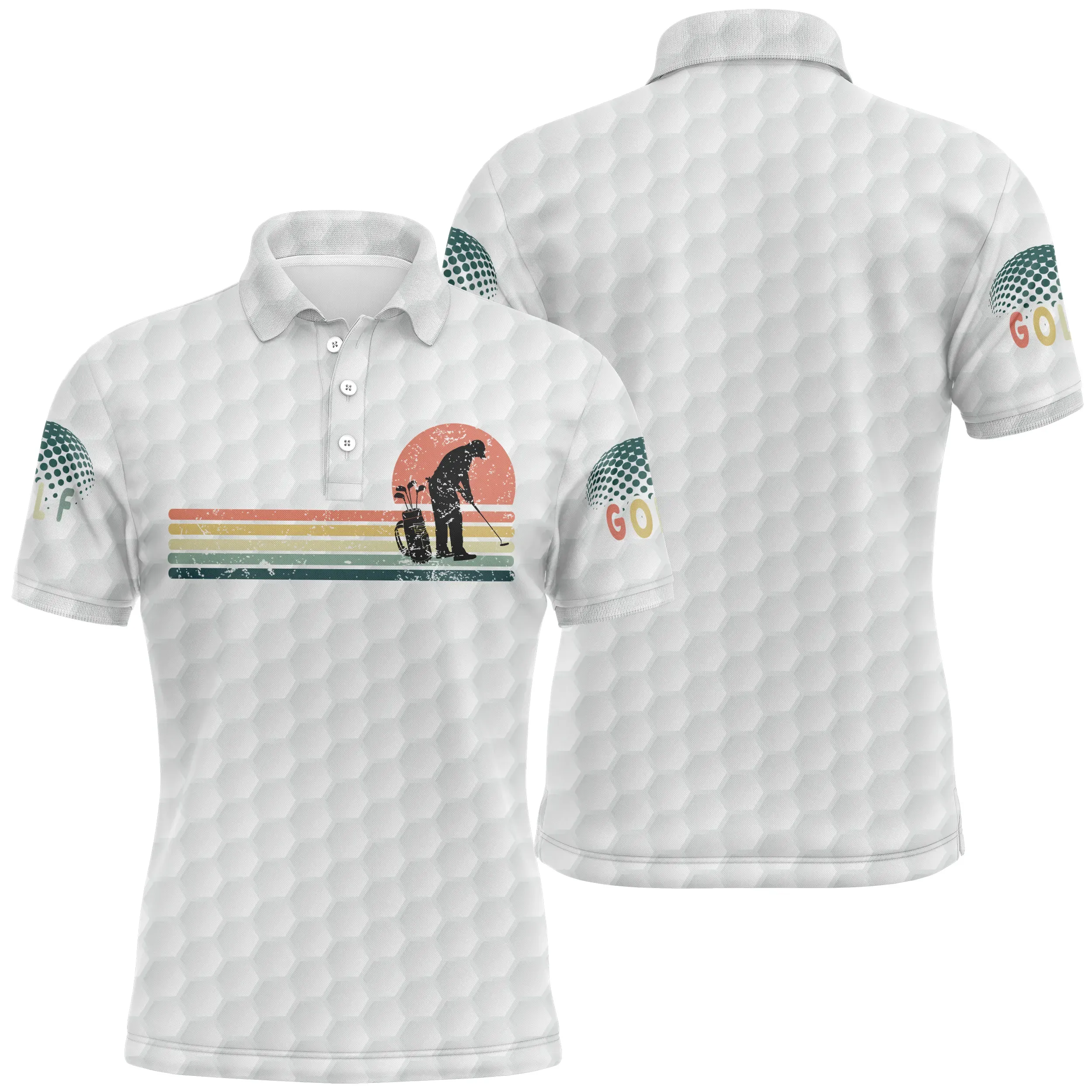 Le Polo Golf Blanc Effet Balle, Motif Golfeur Rétro Vintage est une réinterprétation moderne du style vintage. Un must pour les golfeurs amoureux du rétro!