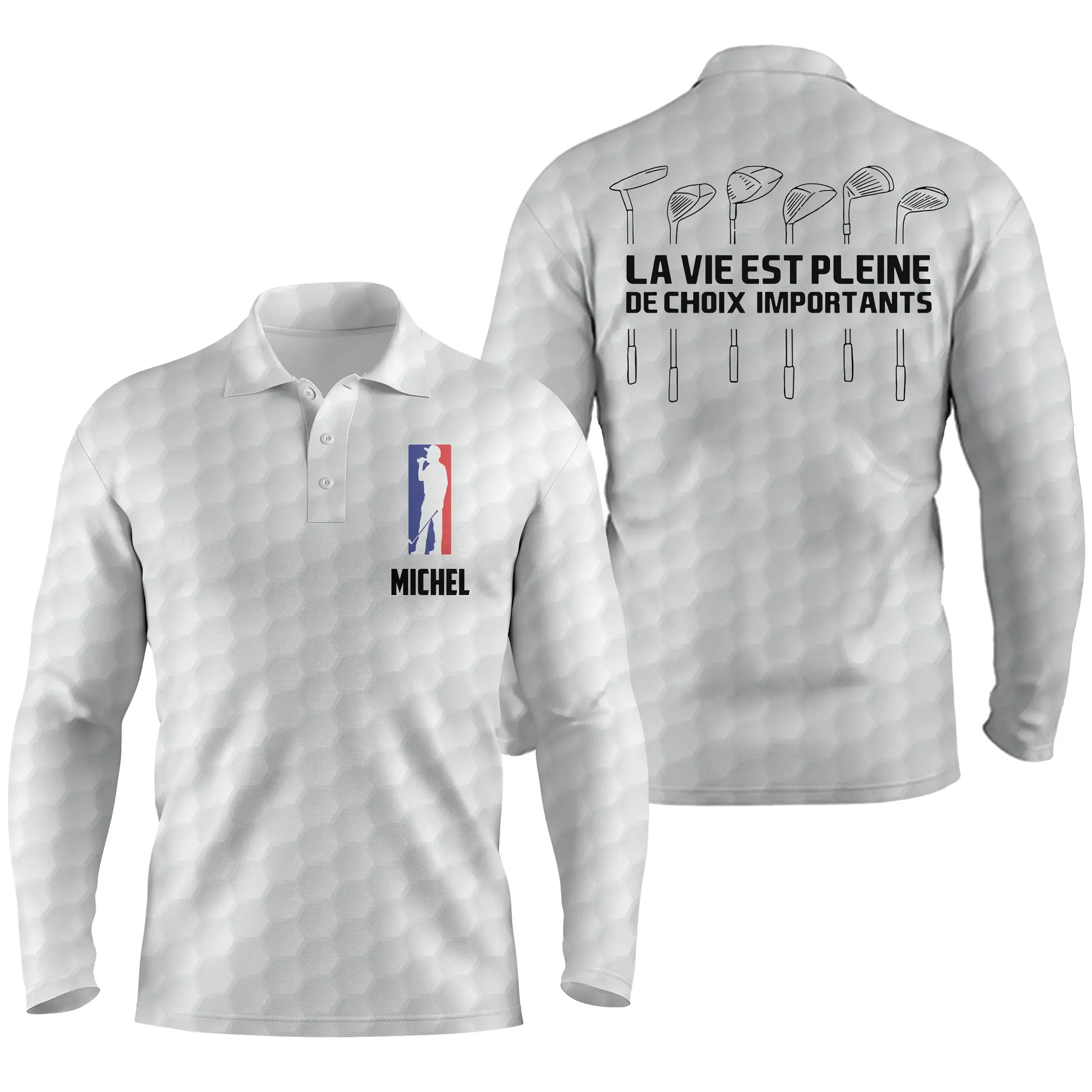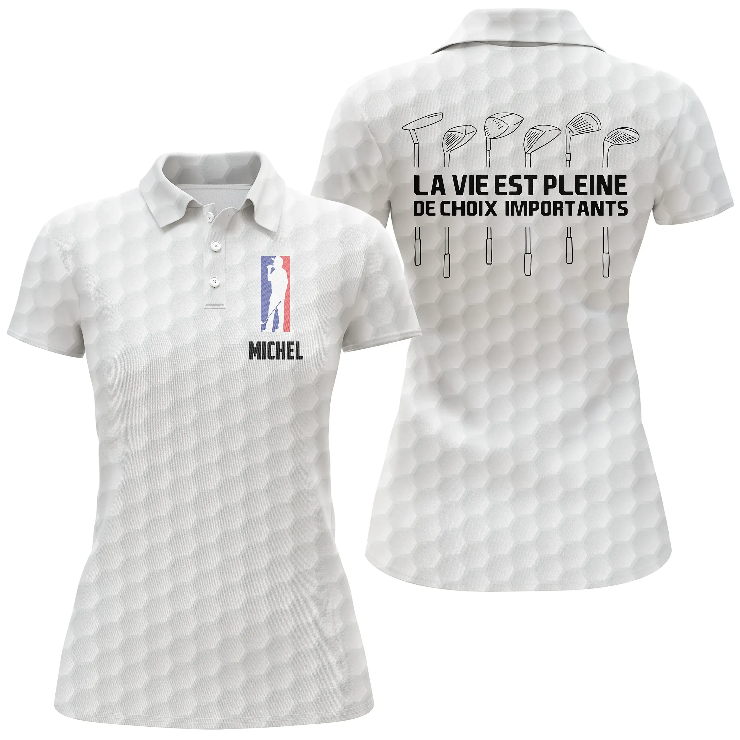 Le texte « La vie est plein de choix importants » inscrit sur le dos du polo vous rappellera que le golf, c’est avant tout du plaisir. Profitez de chaque instant sur le parcours et savourez vos réussites. 🏌️♀️