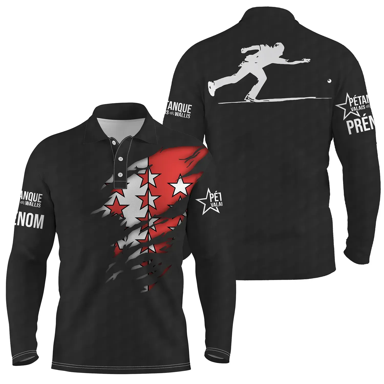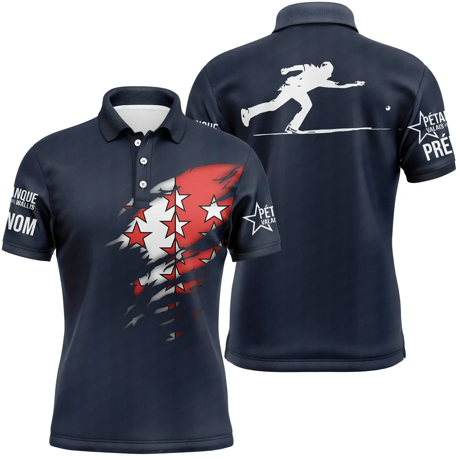 Avec le Drapeau du Canton du Valais sur le cœur ❤️ et le logo Pétanque Valais Wallis sur les deux manches, vous montrez que vous jouez avec votre âme. Votre prénom sur la manche droite ajoute cette touche personnelle qui vous démarque 👑.