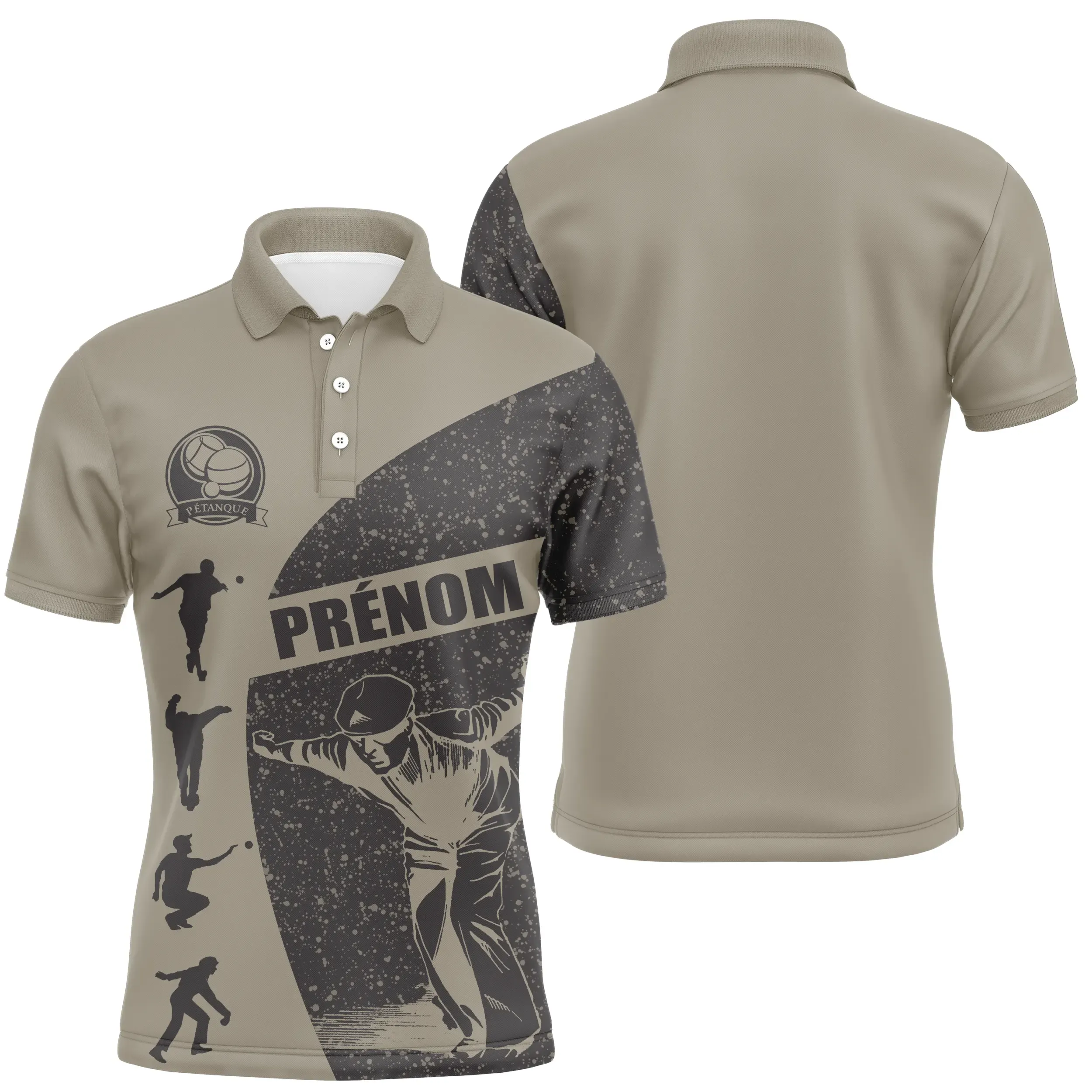🎯 Conçue pour les passionnés de pétanque, chaque pièce arbore un design graphique unique inspiré de l’univers du jeu : silhouettes en action, textures modernes et détails contrastés. Le plus ? Ajoutez votre prénom pour une touche personnelle et affirmée.