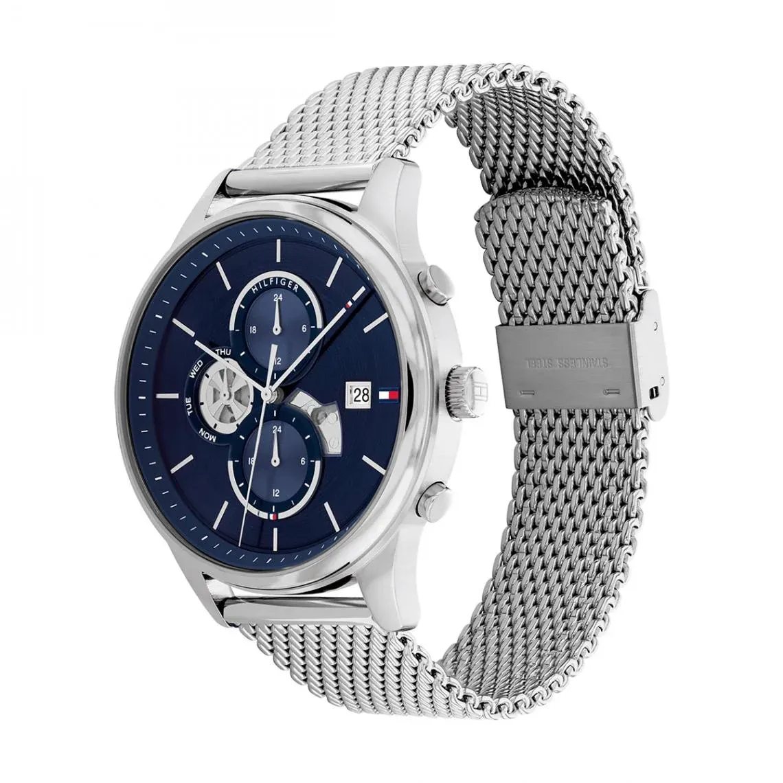 Allure élégante et exceptionnelle ? Avec un bracelet tout argenté et un cadran fond bleu, cette montre Tommy Hilfiger Weston à mailles milanese vous rendra séduisant en 1 clin d’oeil !