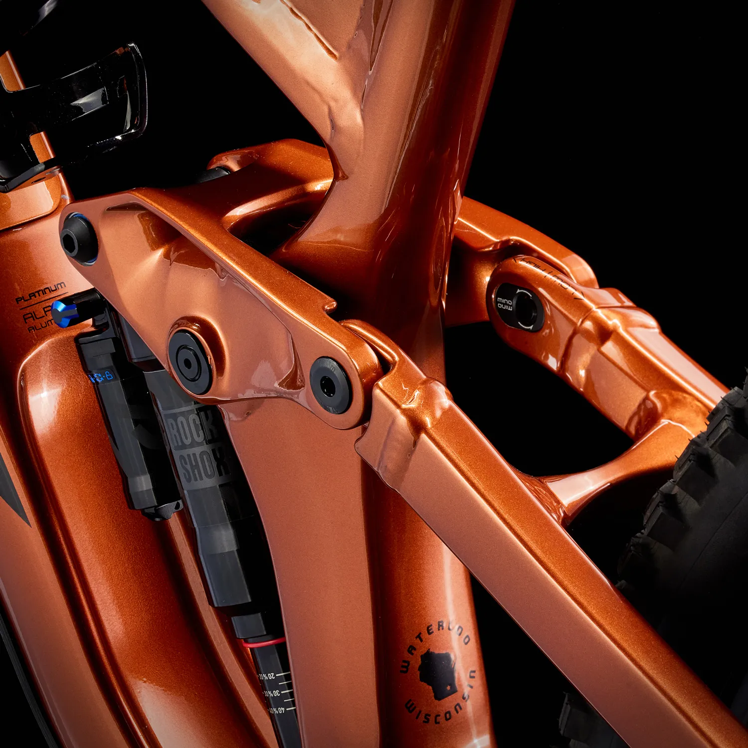 Alpha Platinum aluminium, espace de rangement interne, douille de direction conique, Knock Block 2.0, acheminement interne Control Freak, protection du tube diagonal, protection pour navette, boîtier de pédalier fileté, ISCG 05, tube de selle de 34,9 mmm, basculeur en magnésium, Mino Link, ABP, Boost148, débattement de 160 mm