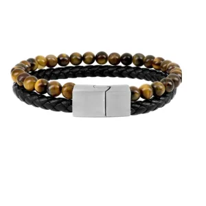Bracelet agrémenté d’une pierre naturelle et d’une papille en métal en forme d’Étoile du Nord.