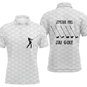 Polo Golf Blanc Effet Balle De Golf, Motif Club De Golf, Texte J’peux Pas J’ai Golf – Cadeau Idéal Golfeurs – CT11072322