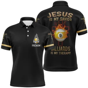 Polo De Billard Professionnel Personnalisé JEU DE LA 9 , Jésus Est Mon Sauveur Le Billard Est Ma Thérapie – CT27062314