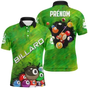 Polo De Billard Professionnel Avec Prénom Personnalisé, Boule De Billard Sur Table Vert – CT27062331